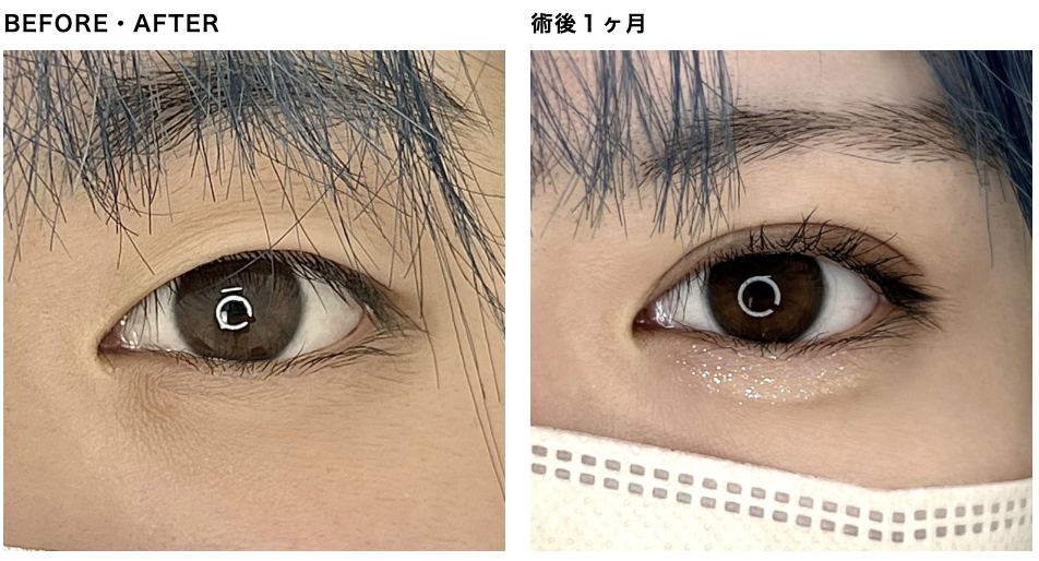 リスク:術後の腫れ、痛み、内出血、左右差、後戻り、シスト形成、異物感、ドライアイ症状、眼瞼痙攣度