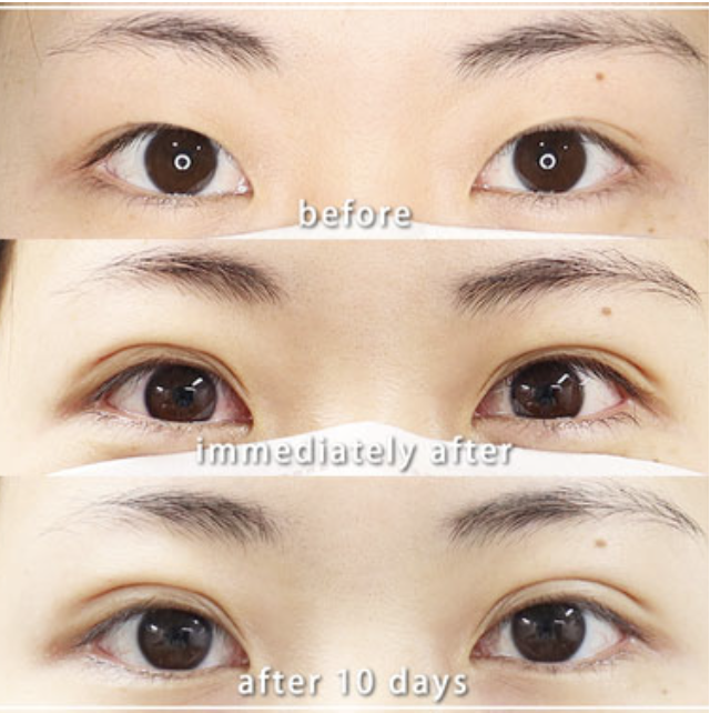 施術概要:ブジーシミュレーションした希望のラインに沿って、特殊な専用の極細糸で数点で固定し、重瞼を作成する。