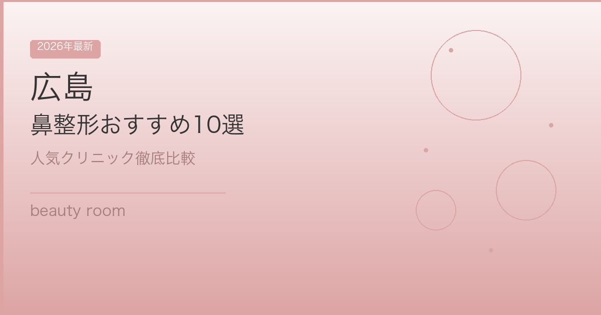 それでは、広島エリアで鼻整形がおすすめのクリニックを10院ご紹介します。大手美容クリニックから地域密着型のクリニックまで幅広くセレクトしました。料金・口コミ・特徴を比較して、あなたにぴったりのクリニックを見つけてください。